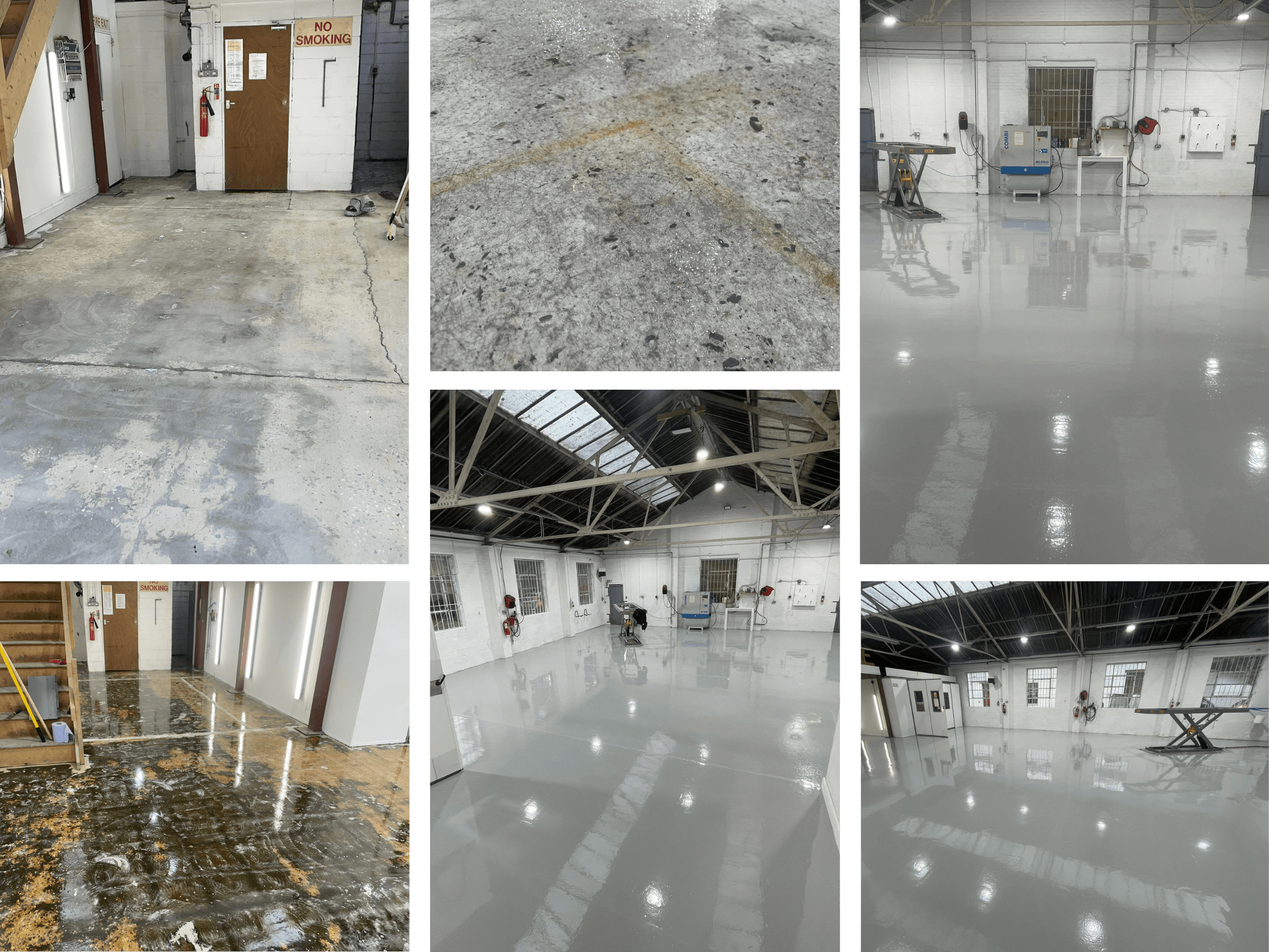 Vacuum assisted diamond grinding and re-vacuum to remove residual dust. Oil tolerant OT Primer applied to seal in any oil contamination.