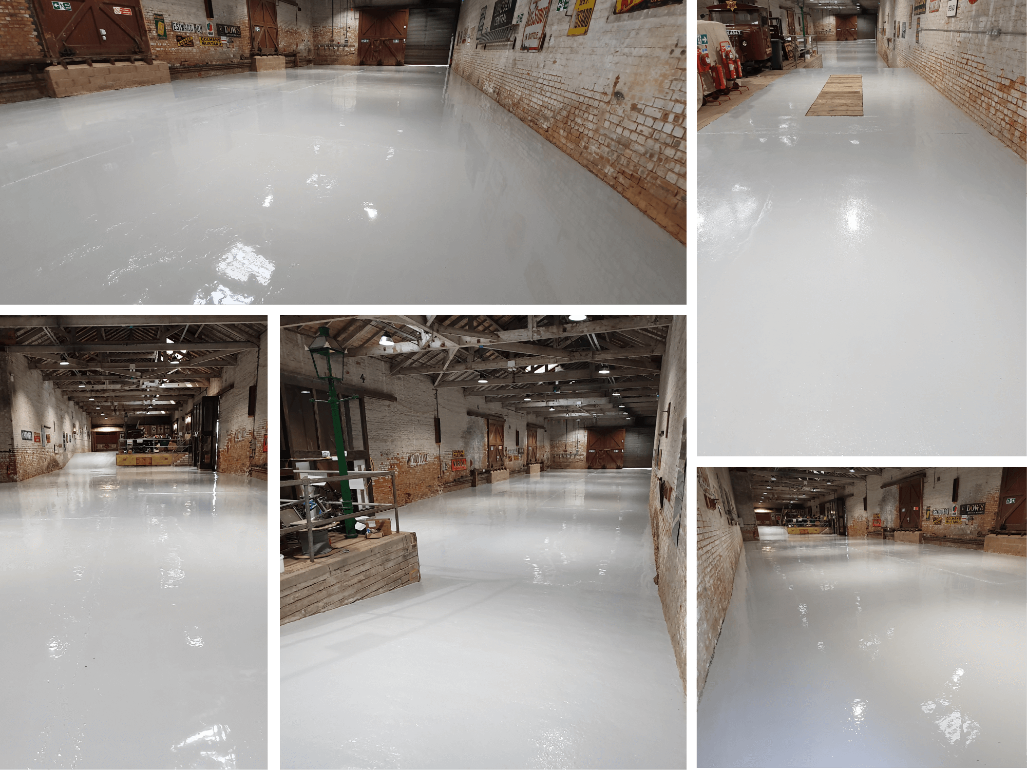 The Rushden Historical Transport Society commissioned Polycote to refurbish and protect their 650 m² floor area. The space, used for visitor access, transit paths and general operational use, required a resilient and professional coating system to address existing wear while ensuring long-term durability. The project included both structural floor repair and application of a hard-wearing epoxy finish, with additional anti-slip installation on ramped and bar areas to enhance pedestrian safety.